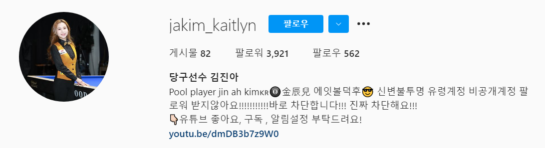 당구선수 김진아 인스타그램