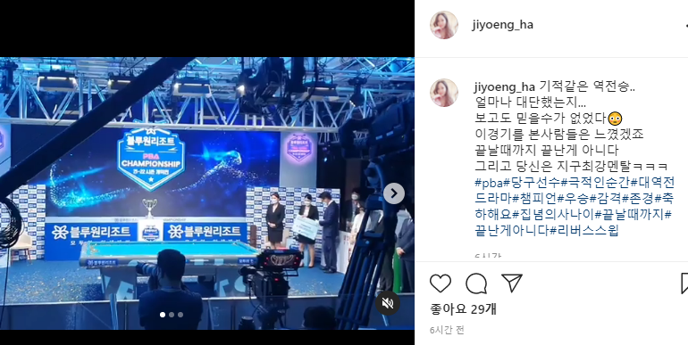당구선수 하지영 인스타그램