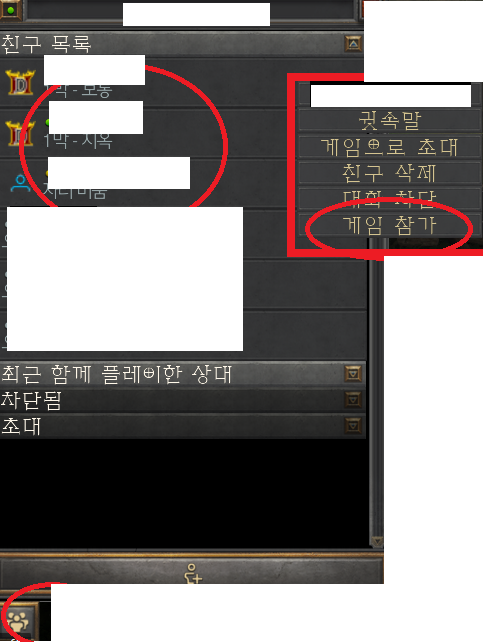 대기실에서 친구 -> 아이디 오른쪽 클릭 -> 게임참가를 눌러서 친구따라 강남을 갑니다.