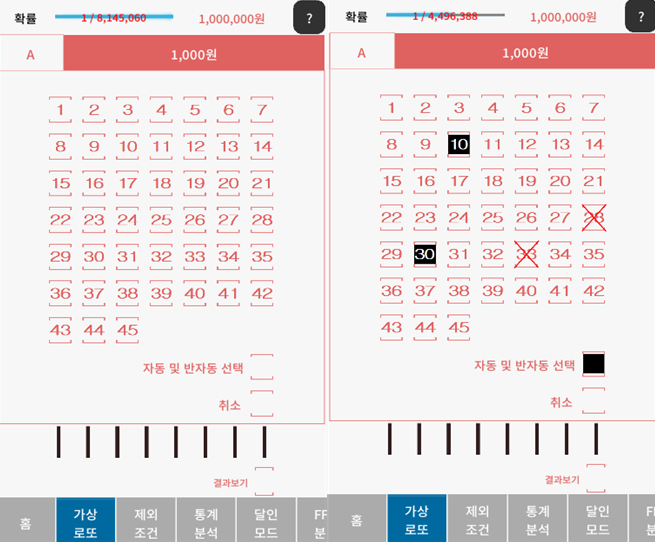 말그대로 가상의 로또를 해보고, 당첨 여부를 가상으로 확인해봅니다. 게임처럼 즐겨보면 되죠.