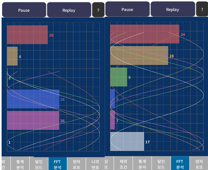 이 분석은 로또 당첨 번호의 데이터 패턴을 분석하는 기능입니다. 고속푸리에 변환 FFT Fast Fourier Transform 을 활용하는 방법이죠.